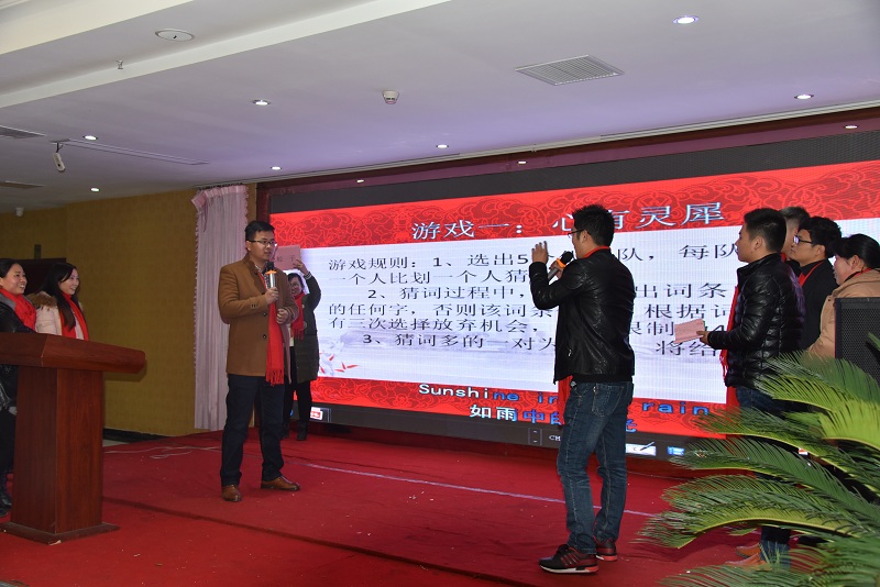 此次聯(lián)歡會各部門員工帶來了形式各異、讓人目不暇接的表演,舞蹈、唱歌、互動的游戲等節(jié)目,五彩繽紛,精彩紛呈,中間還穿插了抽獎環(huán)節(jié),隨著幸運獎、三等獎、二等獎、一等獎、特等獎的抽取,年會的高潮不斷被掀起。聯(lián)歡會不僅給大家?guī)砹藲g聲笑語,同時也讓同事之間彼此的心更加貼近。公司領(lǐng)導(dǎo)與員工親情互動的環(huán)節(jié)、激動人心的抽獎活動、美輪美奐的節(jié)目表演,讓掌聲、歡呼聲、歌聲一直在會場上蕩漾。濃濃的年味撲面而來。整場聯(lián)歡會高潮迭起,呈現(xiàn)出正陽這個大家庭的歡樂和諧。