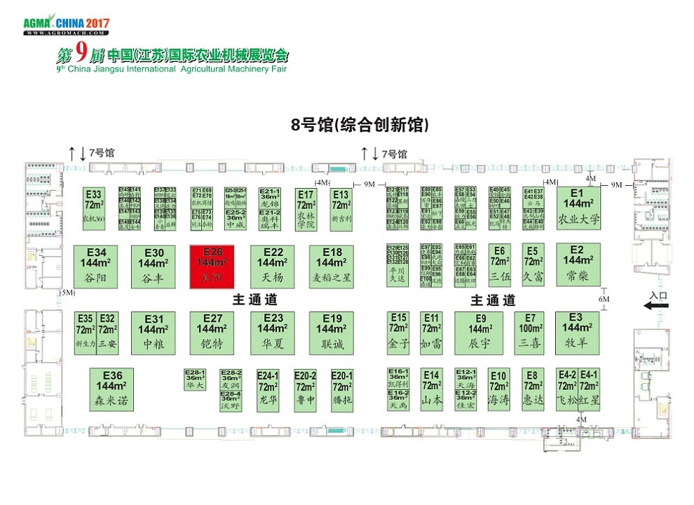 第9屆中國(江蘇)國際農(nóng)業(yè)機(jī)械展覽會展位分布圖:紅色區(qū)域
