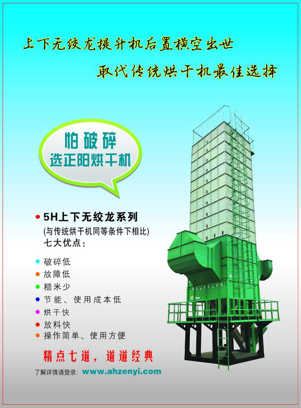 為了更好的滿足市場(chǎng)和客戶的需求,正陽科技推出一款“上下無絞龍系列”谷物烘干機(jī)。糧食破碎霉變猛于虎,正陽烘干機(jī)保護(hù)糧食安全保護(hù)人類健康。正陽烘干機(jī)上下無絞龍系列比傳統(tǒng)烘干機(jī)節(jié)能減耗,是中國糧食烘干機(jī)上下無絞龍?zhí)嵘龣C(jī)后置發(fā)明者與領(lǐng)航者。